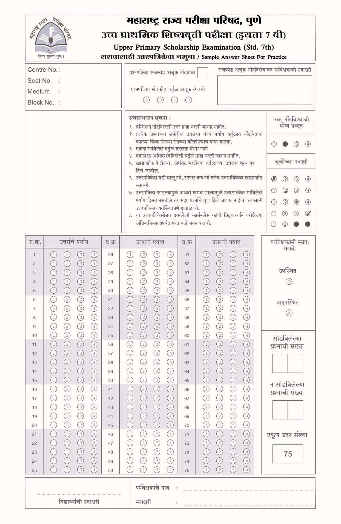 MSCE Pune Scholarship Exam Pattern & Marking Scheme